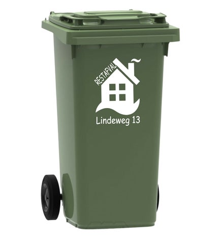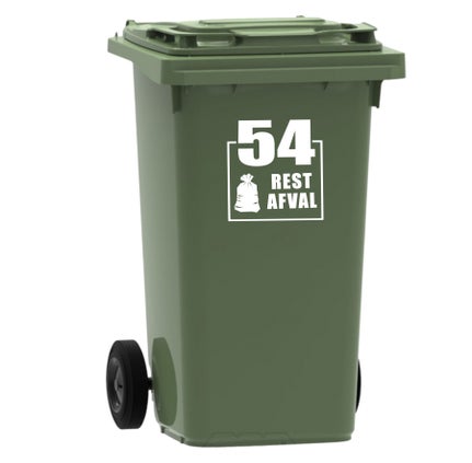 De afmeting van een containersticker is 18 x 18 cm.